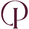 White graphic with the letters 'C' and 'P' combined in a monogram and using an elegant font.